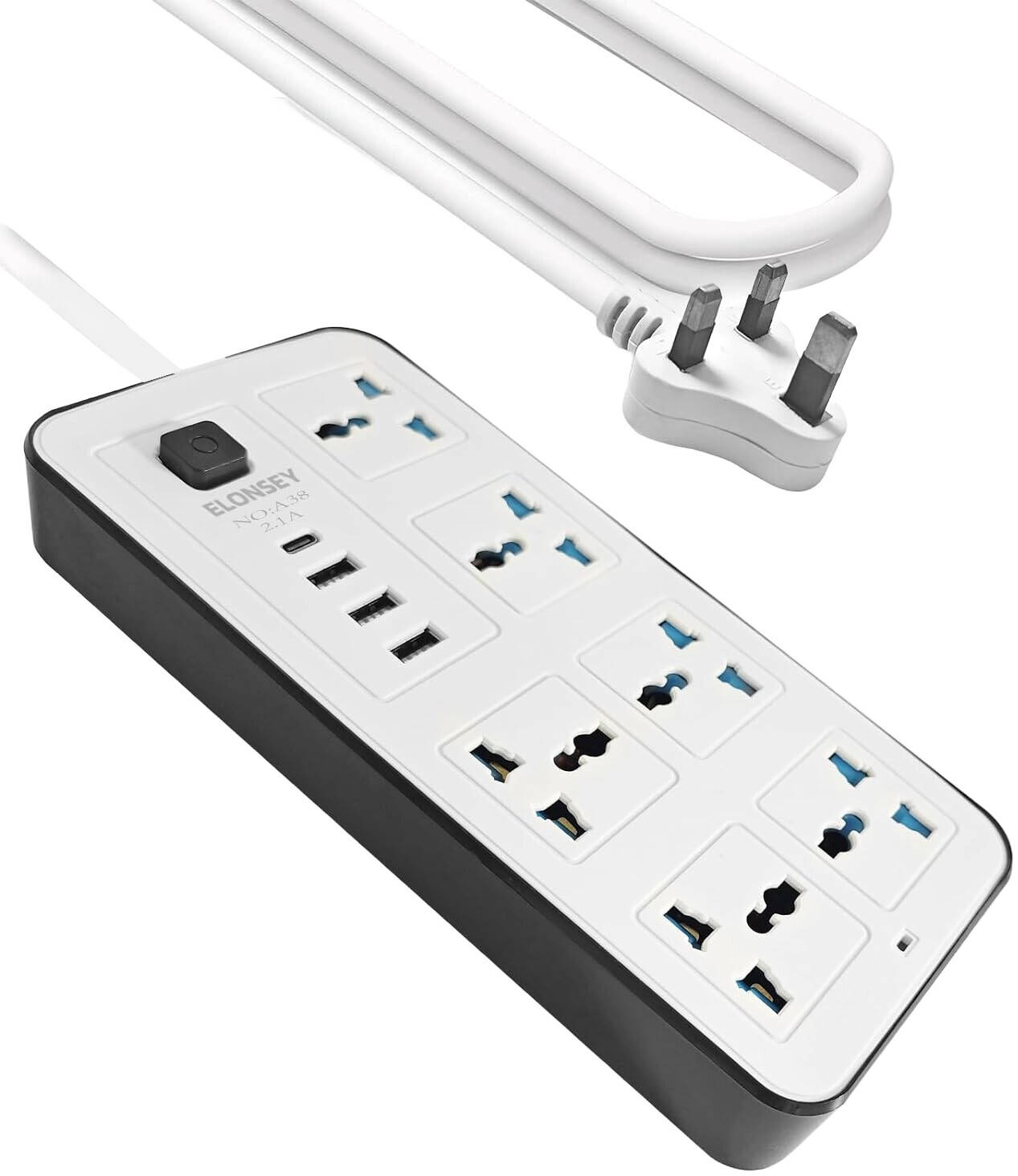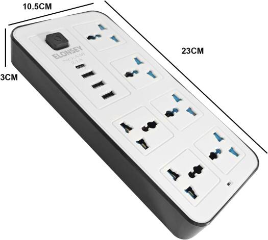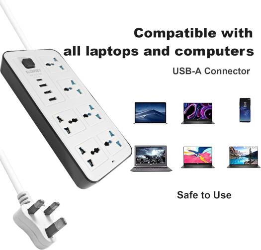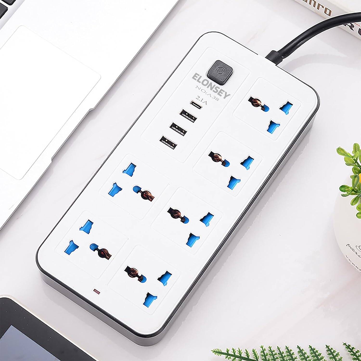 6 AC Sockets & 3 USB 1 Type C Port 6FT Cord